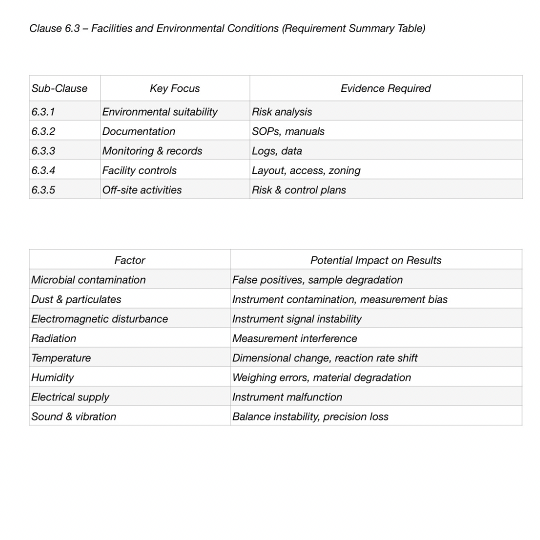 Clause 6.3 – Facilities and Environmental Conditions (Requirement Summary Table)